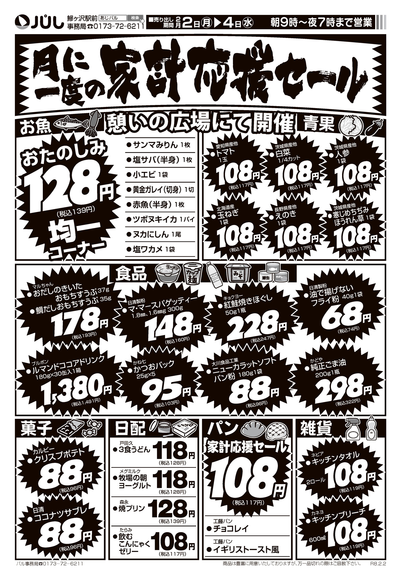 月に一度の家計応援セール▶2/2(月)〜4(水)